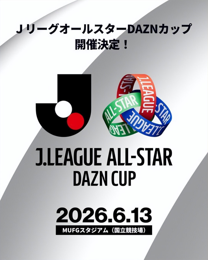 同时,2026年6月13日,J联赛还将在东京的国立竞技场举办全明星赛,这是自2009年日韩联赛选拔队对阵以来,J联赛再次举办全明星赛。